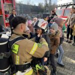 Uczniowie mieli możliwość obejrzenia sprzętu używanego przez strażaków i przymierzenia stroju strażackiego.
